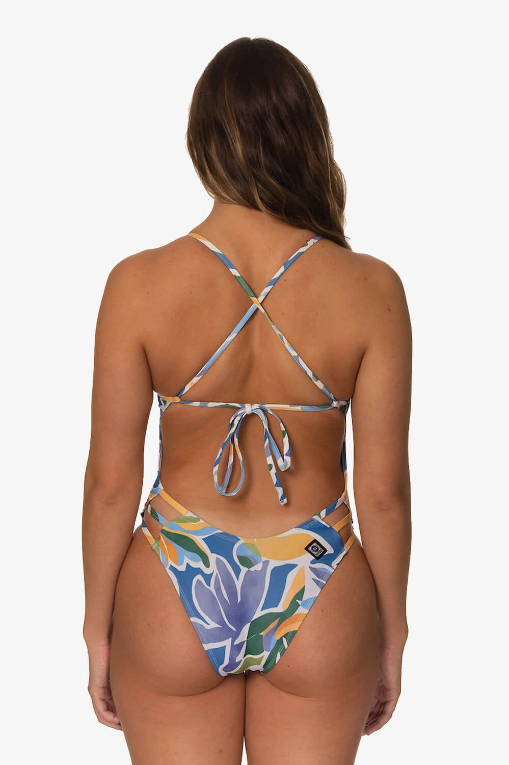 The Nico is a tie-back swim onesie with a fun cut out strap detail on the hip.